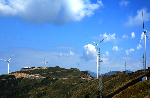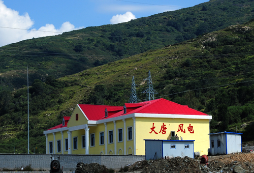 总投资4.59亿元的大唐代县沟掌风电项目一期工程主要设备已安装就绪,即将于10月底并网发电。本项目于2013年1月核准,风电场规划总容量为100MW。一期工程装机容量为48MW。采用三一SEl0520双馈型风力发电机组,单机容量为2MW,使用一机一变单元接线方式接至箱式变压器。通过箱变升压至35kV,而后接至风电场110kV升压站。经升压变压器升压至110kV后,接入系统110Kv峪口变电站的110KV母线,即可将电流输送到各大用户。(杨继兴 摄)