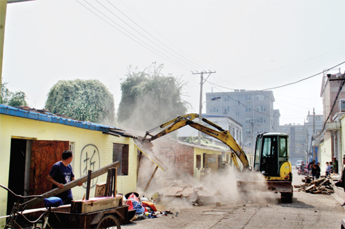 图为十里后村违建拆除现场。