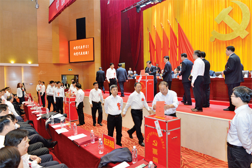 代表们投票选举。(本报记者 宫爱文 摄)