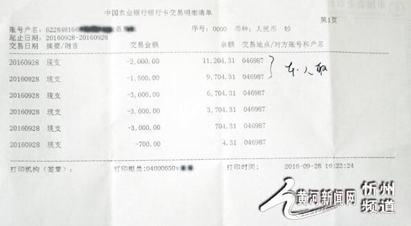 据聂女士讲述,9月28日中午2点多,她的手机突然连续接到四条由中国农业银行发来的短信,显示在三分钟之内有四次总额为9700元的取款记录,余额只剩4.31元。聂女士是忻州一家企业的退休职工,收入微薄,坐在家里眼看着巨款被“刷刷”划走,不知所措的聂女士这才猛然想起当天中午在位于城区学道街口的农业银行ATM机上取过款,再一找,发现随身携带的银行卡不见了。心急如焚的聂女士急忙赶往取款处查找,结果一无所获。随即,聂女士拨打了110报警。