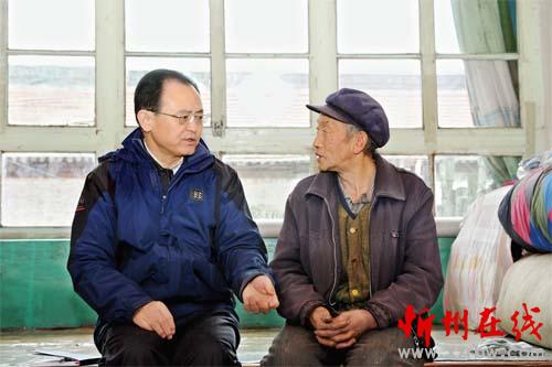 图为市委书记李俊明在宁武县涔山乡大石洞村贫困户李宝林家了解情况。