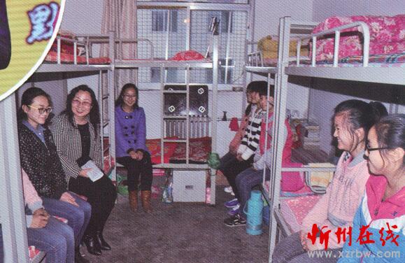 吴睿老师 (左二) 在宿舍和学生交流