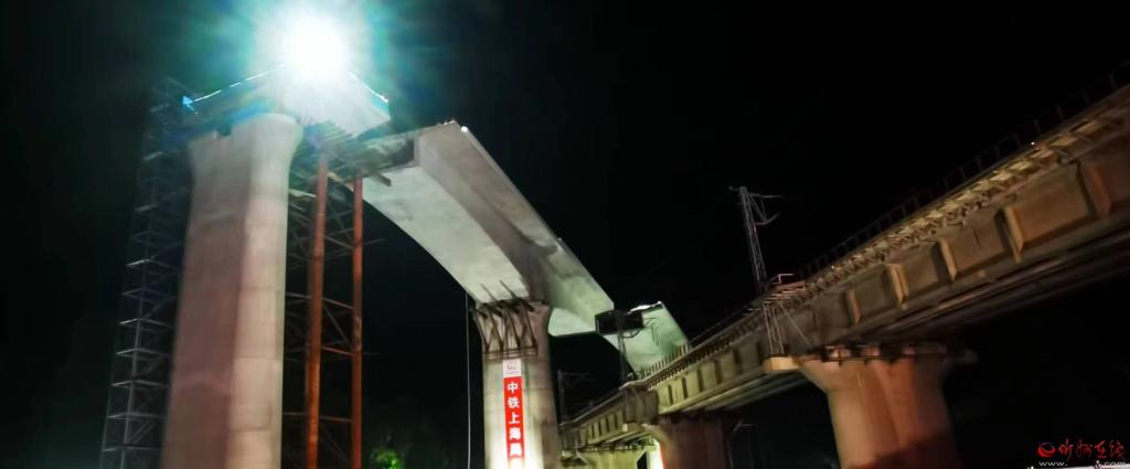 7月29日凌晨,历时120分钟转体,集大原高铁山西段站前4标樊家庄跨韩原铁路特大桥(40+64+40)m连续梁成功转体对接,标志着集大原高铁山西段的首个大桥连续梁成功转体,为年底全线完成箱梁架设和路基预压任务奠定基础。