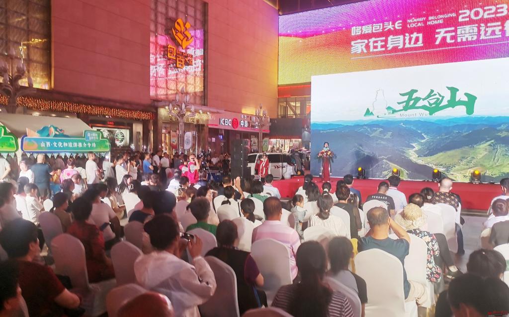 8月13日晚,包头的推荐会现场,文旅星推官崔琴悦正在进行五台山景区推荐。宫清华摄