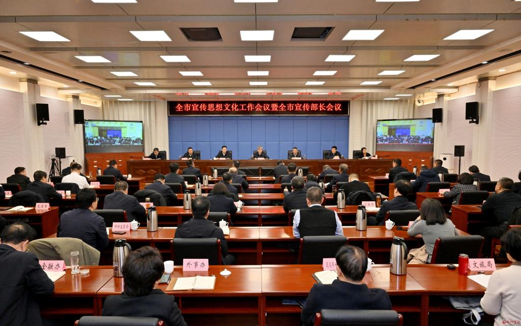 朱晓东指出,习近平文化思想是新时代党领导文化建设的重大成果,是习近平新时代中国特色社会主义思想的重要组成部分,为做好新时代新征程宣传思想文化工作、担负起新的文化使命提供了强大思想武器和科学行动指南。要持续加强对习近平文化思想的学习研究,自觉贯彻落实到全市宣传思想文化工作全过程各方面,切实增强做好新时代新征程宣传思想文化工作的责任感使命感。朱晓东在讲话中充分肯定近年来全市宣传思想文化事业取得的新进展新成绩,对做好新形势下的宣传思想文化工作提出新要求。