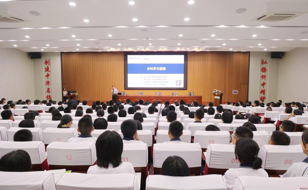 在忻州一中科技楼多功能报告厅,马军为师生们作了题为“水科学与健康”的专题报告,围绕水中矿物质及微量元素对健康的影响、饮用水净化技术、源头减污降碳技术、智慧水务与智能水厂等方面,立足高中教育阶段学情,为广大师生阐述水科学的内涵与知识,并对哈工大生态文明相关学科的现状与发展提出了深刻的见解。在场同学纷纷表示,马军院士渊博的学识和对专业发展的前景展望让人受益匪浅,不仅开拓了大家探寻科学的视野与气度,同时也领略了院士专家的家国情怀、学术风采与人格魅力,激发了大家积极投身科技强国实践,努力成为可堪大用、能担重任的栋梁之材。