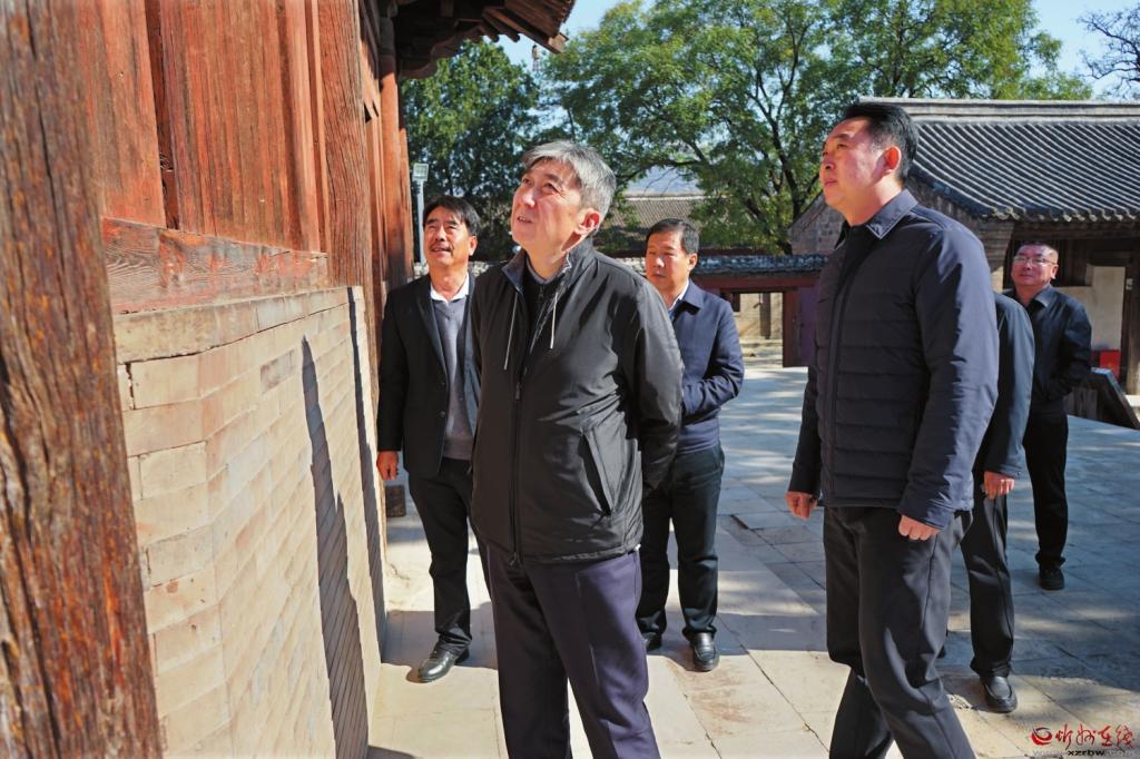 图为市委书记朱晓东在五台县南禅寺调研。本报通讯员摄
