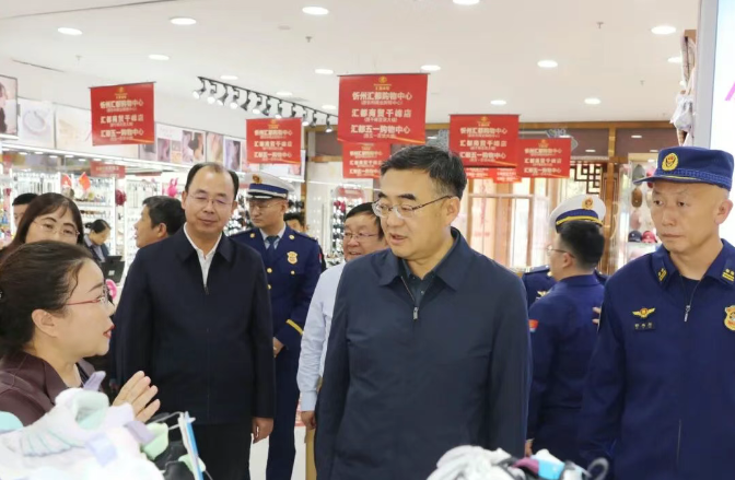 在忻州城区商业街汇都购物中心,李建国了解商业体整体销售和带动就业情况,仔细检查应急通道、消防设备、安全标识等设施,随机抽查工作人员对防火卷帘、灭火器等设施的操作情况。他叮嘱相关人员要切实保障安全设施、特种设备等正常运转,特别要以严格的检验检测保障商业区内各类销售食品的安全,打造放心安全的消费环境。要精准丰富业态,联动古城人流,进一步提升顾客消费满意度。