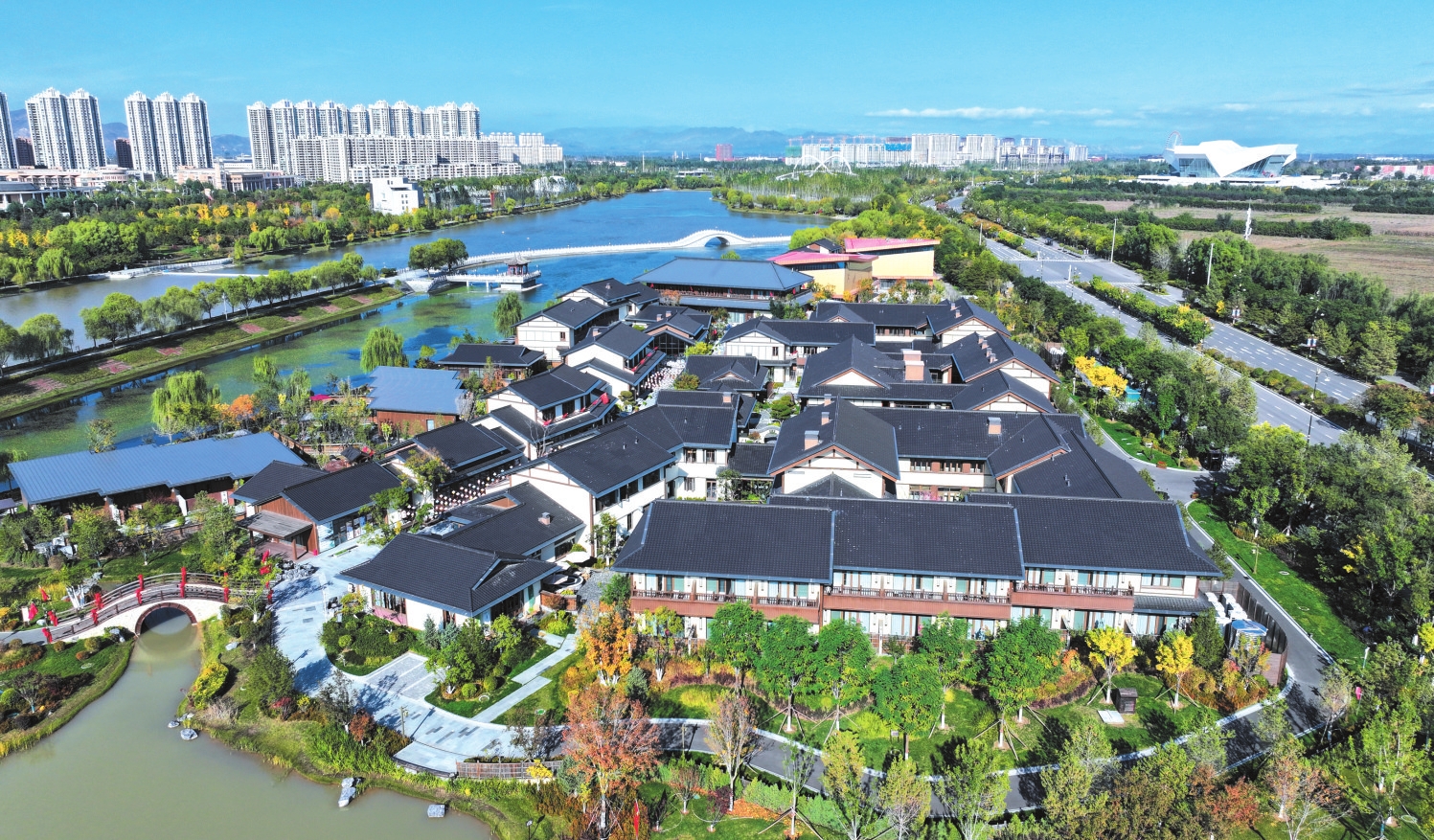 云中河景区清凉湾温泉康养小镇。记者张存良摄