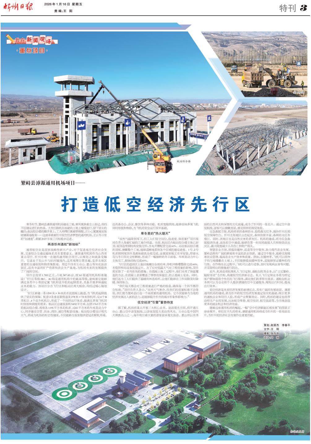 寒冬时节,繁峙县滹源通用机场建设工地,寒风裹挟着尘土掠过,却挡不住建设者们的热情。大型压路机在冻硬的土地上缓缓前行,留下坚实的辙印;航站综合楼的脚手架上,工人师傅们裹着厚棉服,正小心翼翼地安装玻璃幕墙框架——这座承载着忻州低空经济梦想的通用机场,正以冬日里的“加速度”,朝着2027年竣工目标稳步迈进。