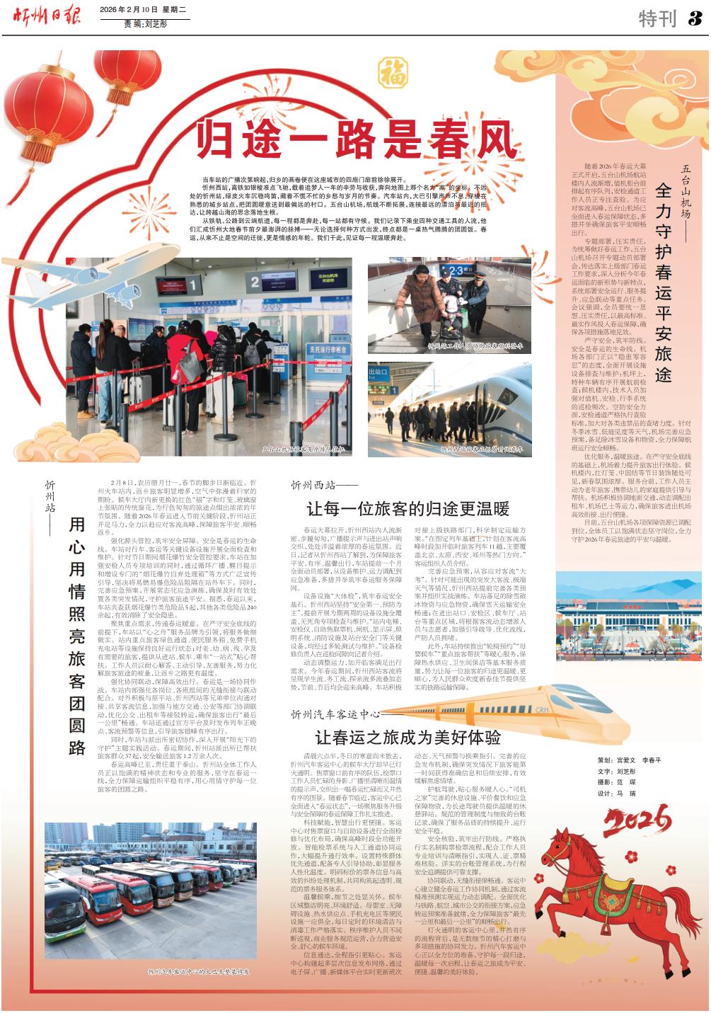 春运高峰已至,责任重于泰山。忻州站全体工作人员正以饱满的精神状态和专业的服务,坚守在春运一线,全力保障运输组织平稳有序,用心用情守护每一位旅客的团圆之路。