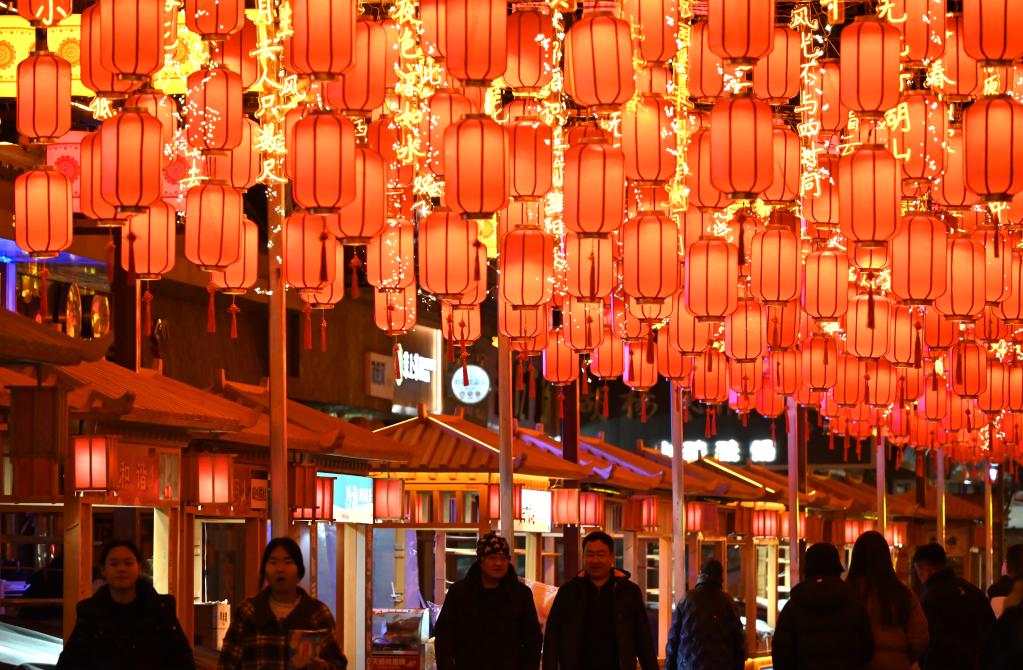 2025年1月27日晚,游客在甘肃省敦煌夜市游览。张晓亮 摄