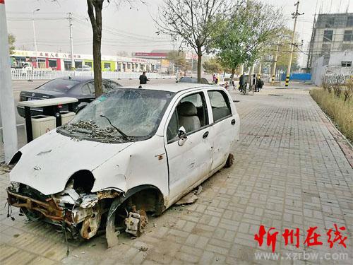忻州城区长征西街路南、武警支队大门西侧,有辆破烂不堪的汽车,长时间停在人行道上,且占据着盲道。希望相关部门能够及时处理