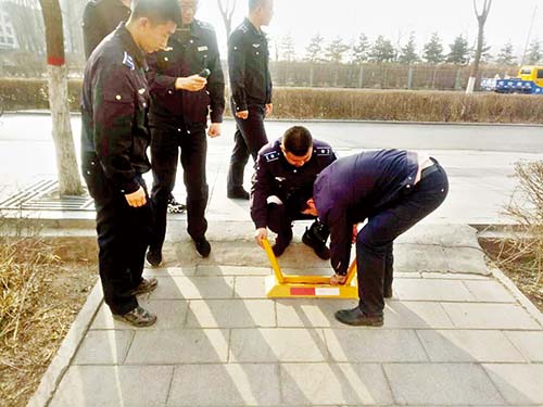 事后,该队根据城市道路管理相关法律法规,依法对设置的10个地锁和11个隔离栏进行拆除,还路于民,赢得了广大市民的赞许。下图为执法人员正在拆除私自安装的地锁。(张志远 董子源)