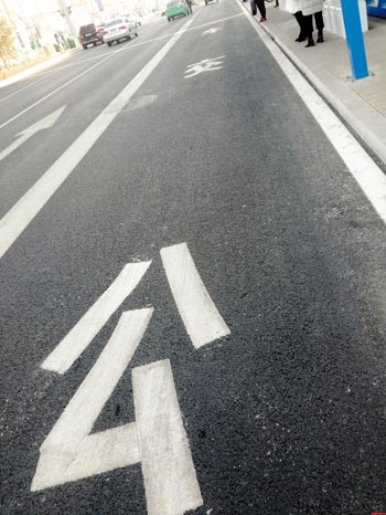 图为城区长征中街(君华新天地对面)一公交站牌处,印在路面上的“公交车”三个字顺序错误。正常阅读顺序是从上至下,从左至右,希望相关部门更正。一网友摄