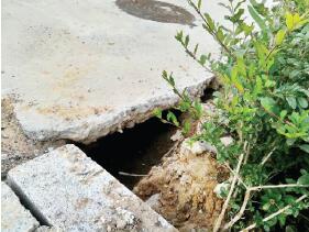 城区慕山南路樊野村西北人行道(路灯050号杆右侧),因下雨出现了路基进水,雨水冲出一个大洞,影响道路安全,希望相关部门及时处理,避免隐患扩大。一网友摄