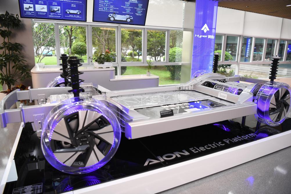 这是广州广汽埃安展出的纯电平台模型(4月24日摄)。据国际能源署测算,2030年全球新能源汽车需求量将达到2022年的4.5倍,当前新能源汽车产能远远无法满足全球市场的需求。从需求端的巨大潜力来看,中国新能源领域产能远未“过剩”。新华社记者邓华摄
