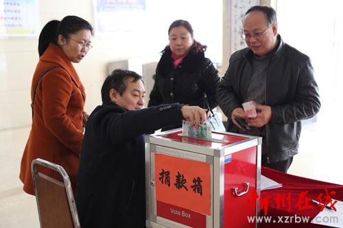 近日,建行忻州分行办公楼大厅涌动着春天暖流,分行“送温暖、献爱心”社会捐助活动在这里举行。捐助现场,分行领导班子成员带头捐助,全体职员纷纷慷慨解囊,踊跃地伸出援助之手,积极献出自己的一片爱心。
