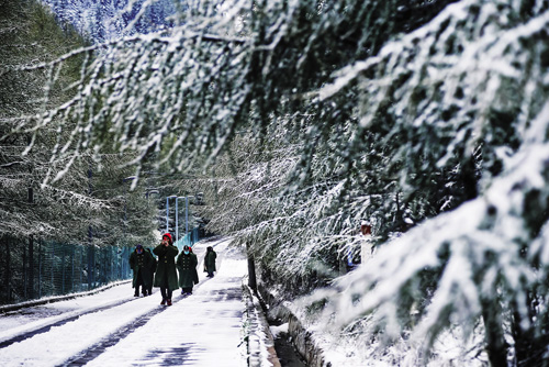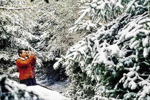 5月12日凌晨,芦芽山万年冰洞景区迎来了一场雪。农历立夏已过一周,我国大多数地方已花团锦簇,芦芽山万年冰洞景区却又遇降雪,景区顷刻间就被白雪覆盖。来景区旅游的游客被这场突如其来的大雪惊讶不已,纷纷拍照留念。(曹建国 摄)