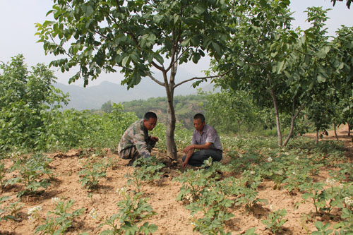 自古独居一地的山药蛋,如今又种上了核桃树。这是五台县阳白乡桑院村从五台农商银行阳白支行贷款70万元,实施科学种田的又一“绝招”。一般是1亩山药蛋地间种10株核桃树。亩产山药蛋600公斤,收入960元。核桃树亩产70公斤,收入1540元。共收入2500元,较单产山药蛋900公斤的1440元增收58%。最大限度地发挥了坡地利用率。今年全村核桃树“嫁”山药蛋280亩,年产值可望达到70万元,增收25.2万元。(金俊贤 郑光)