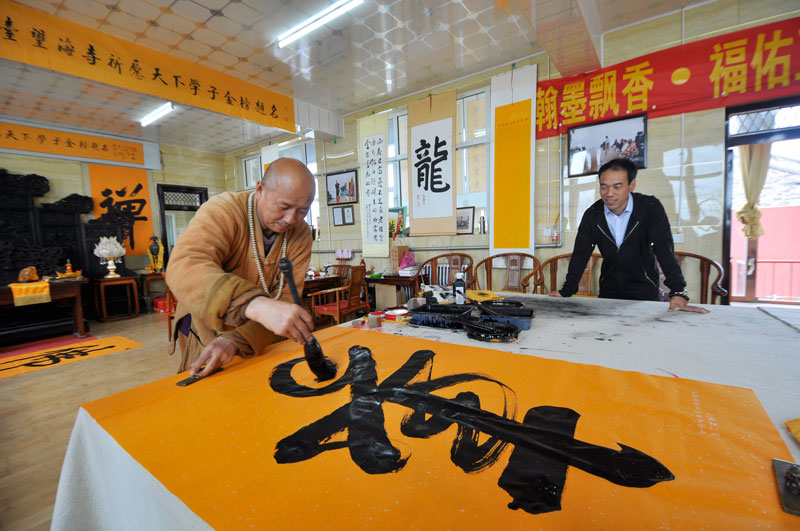 29日,中国佛教讲经交流会在五台山召开之际,记者走访了东台顶望海寺释觉一法师,他在勤修佛法的同时在书画艺术上也自成一家。他认为,佛法与书画关系密切相通之处,学习佛法可促进书法境界的提升,有助于佛法的弘扬。