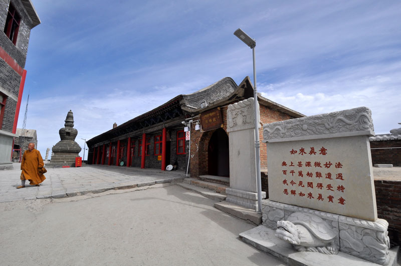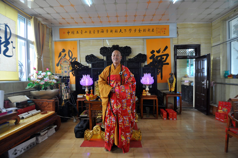 他常年居于海拔高达2996米的五台山东台顶望海寺,每当旭日初升,霞光万道,静谧的望海寺完全浸于一片云山雾海之中,配上浑厚的晨钟声,愈发显得庄严肃穆。