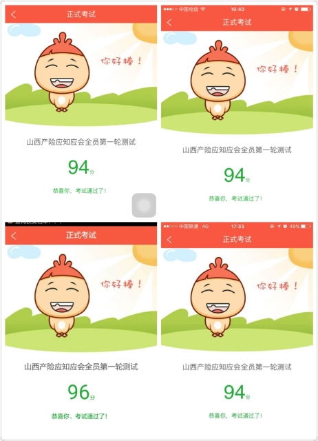 9月21日,平安产险河曲支公司积极响应分公司及中支要求,组织全员在知鸟APP上参加“应知应会100问”第一轮考试,并以90分以上分数全员通过。