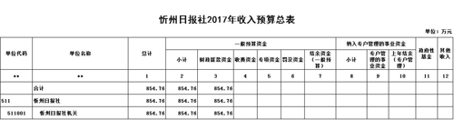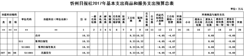 忻州日报社2017年度部门预算及“三公”经费预算公开情况