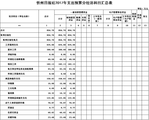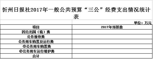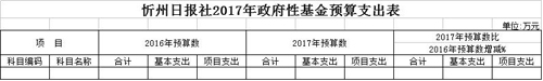 忻州日报社2017年度部门预算及“三公”经费预算公开情况