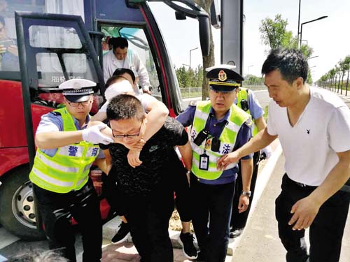 此次演练假设一家客运公司的一辆中巴客车突然起火,乘客被困。“事故”发生后,驾驶员立即拨打了“110”报警电话和“120”救护电话,该公司及时向当地政府应急办、运管、交警部门负责人汇报。接到“事故”报告后,参加演练的运管、交警、“120”等部门人员以最快速度赶到现场,立即启动应急救援预案,有序开展救援,及时解救被困人员和伤者,疏导恢复正常的交通秩序。整个演练活动各部门配合默契,过程井然有序,现场指挥到位,伤者救助及时,达到了预期效果。(鲁明强 张凯)