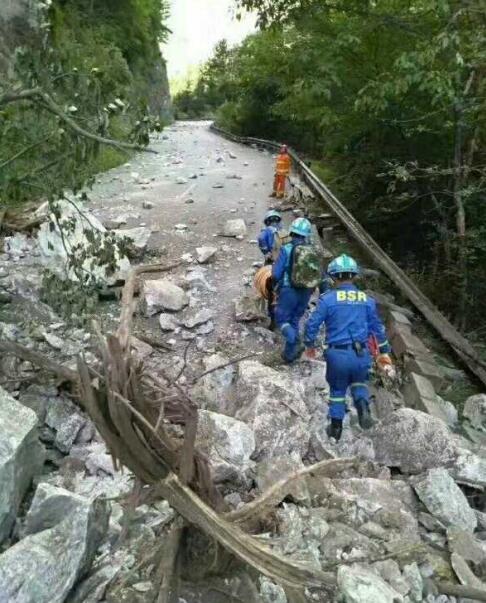 随后进入灾区展开救援,九寨沟是世界自然遗产、国家重点风景名胜区、国家5A级旅游景区、国家级自然保护区、国家地质公园、世界生物圈保护区网络,是中国第一个以保护自然风景为主要目的的自然保护区。此次遭受7.0级巨大地震破坏后,昔日那一片胜景遭受到重大的破坏,整个景区满目疮痍,很多非常有特色的景点一片狼藉。当时大脑里什么也不想,只有一个念头“搜救”。我们的工作实施重点是围绕人员搜救、组织群众疏散、帐篷搭建、医疗救助、信息排查、物资补给发放、人员转移、灾区受灾情况评估报告等,打通通往震中重灾区的路线,成功搜救被困景区腹地,失联超过40小时的10名被困群众,搜索到遇难者遗体5具、协助排查失联群众求助12次。快速排查评估所有重灾村镇,救治伤病员若干。由于心情着急,救援战斗显得很是漫长,截止12日20时余震发生总数3089次,其中4.0—4.98级余震3次,3.0—3.9级26次,最大余震4.8级,有一次余震来临,当时我们正好就在震中,我和另一名队员躲在大树后,从上面“飞”下来的石头就像子弹一样从耳边掠过,眼前灰朦朦一片。