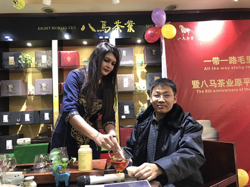 12月13日,毛里求斯姑娘早上从河南来,到原平八马茶业店推介毛里求斯国礼茶。