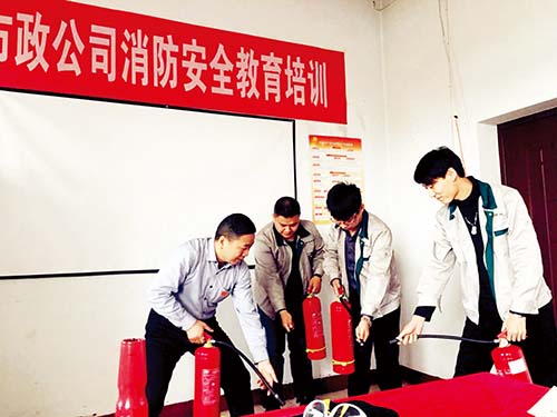 本报讯3月21日下午,忻州市市政工程有限公司举办了一场别开生面的消防安全知识培训,公司职工不仅学习了消防安全知识,还与授课老师进行互动,在老师的指导下掌握了各种灭火器材的使用方法。