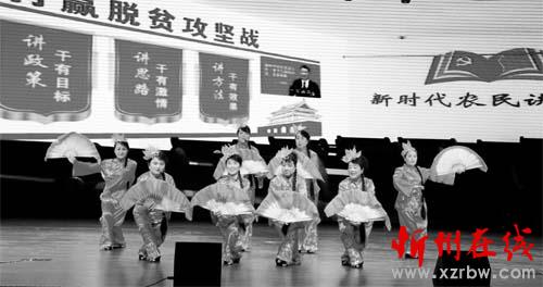 7 月25 日,河曲县举办了“饮水思源、不忘党恩”精神扶贫文艺演出。来自农村的群众演员和县、乡包村帮扶干部同台演出,通过独唱、合唱、说唱、快板、呱嘴、二人台、诗朗诵等丰富多彩的艺术形式,再现了各级党组织带领广大群众攻坚深度贫困的生动实践,讴歌了党员干部携手贫困群众奋战主战场的精神风貌,为决胜脱贫、全面脱贫注入了强大精神动力。贾金理 摄