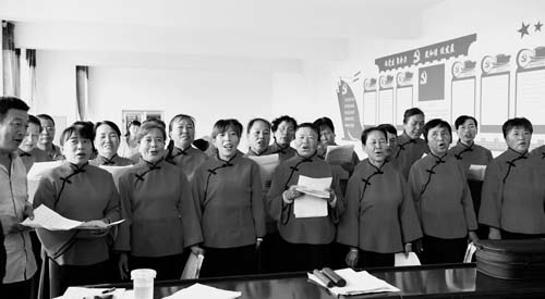 7月30日,河曲县楼子营镇柏鹿泉村文化活动室里20多名本村妇女正在排练大合唱。平日里,该村经常利用空闲时间组织村民以传统二人台对唱、快板、集体大合唱等群众喜闻乐见的表演形式活跃乡村文化,满足村民精神文化需求。 (邬耿杰 摄)