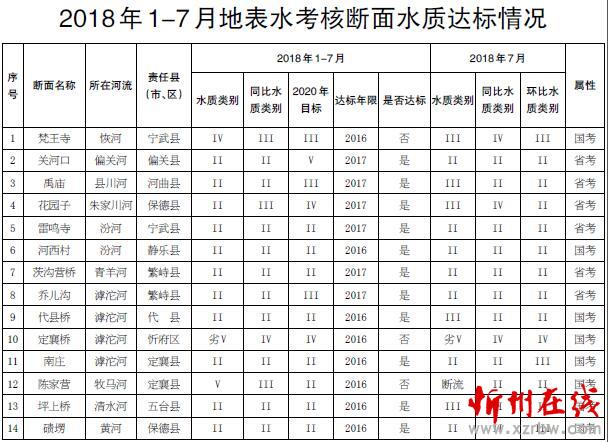 根据省环境监测中心站和忻州市环境监测站关于2018年1-7月国家、省考断面水质监测数据的评价结果,现将有关情况通报如下: