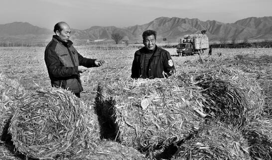 入冬以来,五台县委、县政府组织有关单位深入到田间地头,宣传《五台县环境保护局大气污染防治规则》和《五台县畜牧局秸秆深加工实施办法》,面对面给农民讲解烧秸秆污染空气和打包秸秆喂牛的好处。东寨村养牛大户闫忠海高兴地说:“你们这样解释,咱懂。‘环保+饲料’咱农民记得牢。我已在7个村打包秸秆7200亩,保证不烧一根,全部喂牛”。图为田间清理、加工秸秆。金俊贤 摄