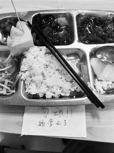 之所以要选择这样的方式,他解释,因为当时餐厅里没有其他同科同事,而且麻烦他人一直守着自己的餐盘也不可能,所以就希望留下纸条提示食堂工作人员不要收他的餐盘。而在去年,栾远航就曾遇到过一次临时离开,餐盘被收走的尴尬。“后来插管很顺利,差不多20分钟我就回来了,餐盘也没被收走。” 栾远航说。