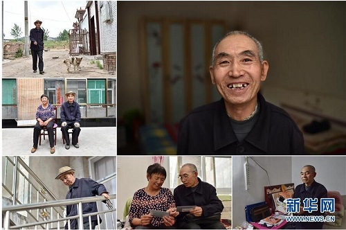 牛庆山,男,1949年出生,山西省长治市潞城区西坡底村人,1969年参军,1973年退伍回村,以种地为生。2015年,牛庆山因患重病住院,家庭陷入贫困。在当地政府的帮助下,他申请了低保、大病医疗补贴、金融扶贫补贴,生活有了保障。 右上:牛庆山肖像;左上:牛庆山走在村里;左中:牛庆山和老伴在新房前合影;左下:牛庆山走下新房的楼梯;下中:牛庆山和老伴在翻看老照片;下右:牛庆山在新房的卧室里(拼版照片,6月12日摄)。 地处晋东南的山西省长治市,位于由太行山、太岳山环绕而成的上党盆地中。在群山中、崖壁上,许多村庄自然条件恶劣,基础设施落后,脱贫致富是大山深处人们的迫切心愿。 近年来,一场场脱贫攻坚战,在一个个深山村打响。政府全力探索脱贫路径的同时,山区百姓因地制宜,靠自己的双手和智慧走上致富路,交出了一份扎实的脱贫答卷。 记者在太行山、太岳山一路寻访,记录下多位70岁老人的生活。这些共和国的同龄人,亲历了山乡的巨变,见证着长治山区脱贫攻坚伟大工程的一步步推进。 新华社记者 曹阳 摄