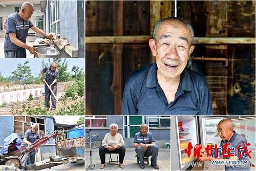 郭中其,男,1949年出生,山西省长治市潞城区常村人,全家6口人靠种地为生,因家人重病而造成生活困难。被纳入建档立卡贫困户后,郭中其家人治病的花销显著减少,子女参加了免费技能培训并找到了工作,家里的生活条件得到了改善,2017年全家脱了贫。 右上:郭中其肖像;左上:郭中其在院子里接水;左中:郭中其在田地里锄草;左下:郭中其在擦拭拖拉机;下中:郭中其和老伴坐在院子里;下右:郭中其从冰箱里拿出西红柿(拼版照片,6月12日摄)。 地处晋东南的山西省长治市,位于由太行山、太岳山环绕而成的上党盆地中。在群山中、崖壁上,许多村庄自然条件恶劣,基础设施落后,脱贫致富是大山深处人们的迫切心愿。 近年来,一场场脱贫攻坚战,在一个个深山村打响。政府全力探索脱贫路径的同时,山区百姓因地制宜,靠自己的双手和智慧走上致富路,交出了一份扎实的脱贫答卷。 记者在太行山、太岳山一路寻访,记录下多位70岁老人的生活。这些共和国的同龄人,亲历了山乡的巨变,见证着长治山区脱贫攻坚伟大工程的一步步推进。 新华社记者 曹阳 摄