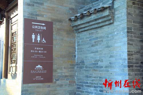 据王经理介绍,眼下忻州古城已建有23个公共卫生间,其中有17个达到全天候开放。这些公厕的规模、分布都是经过反复调研后确定的,以后还要根据游客的需求继续扩建。其中最具现代化的公厕有4个:即南北大街八座门旁、蓝墙底巷、草市巷口和东大街。这些卫生间内除具有常规的设施外,都配有洗手液、抽纸、烘干机等。除分设男女卫生间外,还有专供残疾人使用的特殊卫生间。特殊卫生间专设了无障碍通道、坐便器扶手等较为完备的无障碍设施。安全抓杆、拉手等完全符合无障碍设计标准要求,还增设了电加热马桶盖。根据各厕位空间,结合使用功能,又设了置物台、挂钩,体现了“以人为本”的服务理念,更体现了对残疾人的关心、关爱。在厕所外,其他附属设施如导引标识、标牌都合理分布,所有灯箱晚上都能亮起来。特别是八座门旁的公厕大院,院内有可供如厕的11个“豪华”卫生间,院子中间还专门设计了供游客等候如厕的休息台。