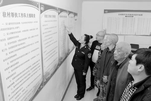 图为环保干部为村民讲解上墙公开的帮扶职责。金俊贤 摄