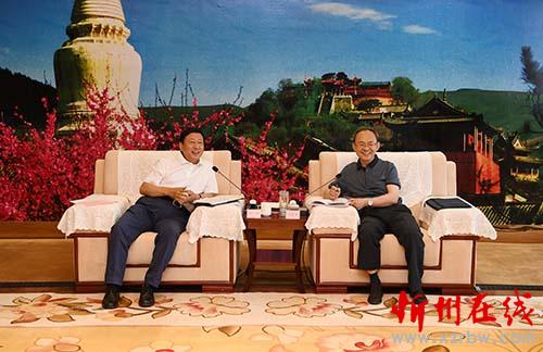 郑连生与华远国际陆港集团董事长武强会谈。刘纪森 摄