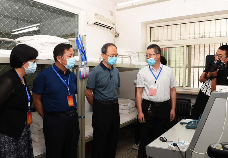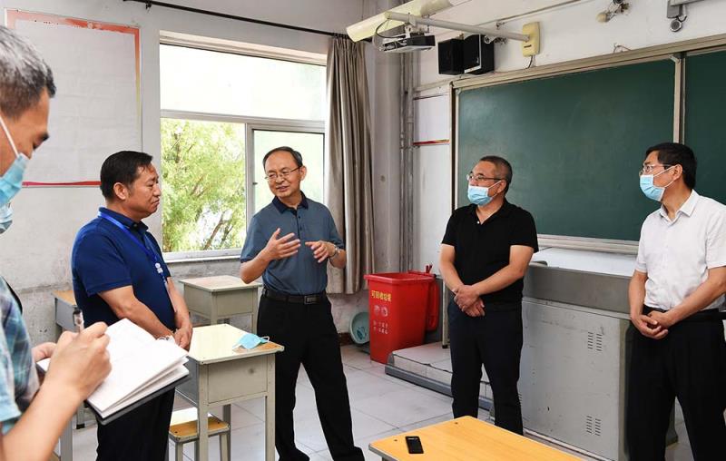 郑连生在忻州六中考点检查疫情防控落实情况和备考工作。刘纪森 摄