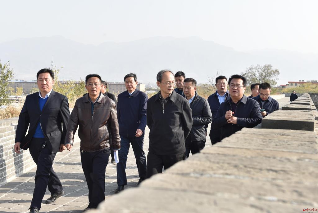 代州古城西门瓮城及西城墙是代州古城旧址的一部分,西城墙是代州古城墙的重要组成部分。郑连生一行登上气势雄伟、高大坚固的西门瓮城及西城墙,一览代州古城巧夺天工的建筑风格。郑连生强调,代县作为全国历史文化名城,对文物保护及城墙等古迹的修复保护要“修旧如故,以存其真”,要追求“原汁原味”,真正把文物完完整整地保护起来、利用下去,让文物活起来。要把代县这一历史文化名城真正打造成对外开放的窗口、产业升级的平台、招商引资的枢纽、经济发展的高地。
