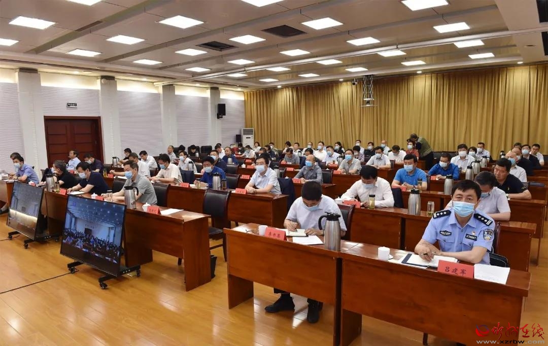 市委平安忻州建设领导小组2021年第二次会议暨信访维稳、扫黑除恶、打击电信网络诈骗推进会会场。冯晓磊 摄