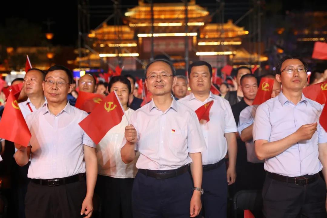 本报讯 (记者王 晟)初心如磐,迈步新时代;使命在肩,风劲帆正满。重温党的辉煌历史,歌颂党的伟大成就。6月26日晚,由市委、市政府主办,市委宣传部、忻州军分区政治工作处、忻府区委区政府、市广播电视台承办的忻州市“永远跟党走”庆祝中国共产党成立100周年文艺晚会,在忻州古城北城门楼南广场隆重举行。市委书记郑连生,市委副书记、政法委书记、宣传部长郭奔胜,市人大常委会主任王珍,市政协主席王建廷,市领导刘卓良、裴峰、刘瑞生、张文伟等出席并观看演出。