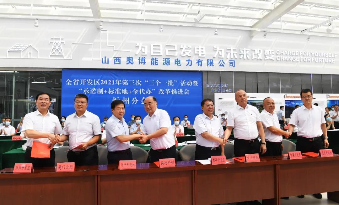 本报讯 (记者杨峰雷)7月16日,全省开发区2021年第三次项目集中签约一批、开工一批、投产一批“三个一批”活动暨“承诺制+标准地+全代办”改革推进会通过视频连线方式举行。我市作为分会场同步举行相关活动,市委书记郑连生在忻州分会场出席,市委副书记、市长朱晓东主持忻州分会场签约仪式。市委常委、秘书长裴峰,副市长范建民在忻州分会场出席。