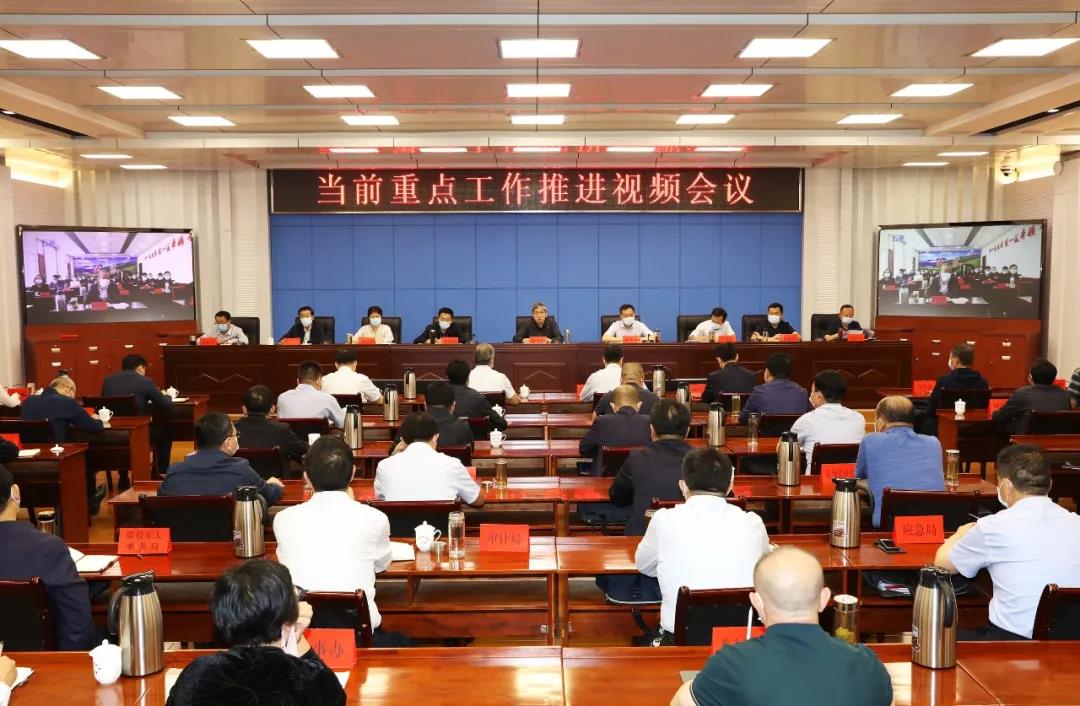 本报讯 (记者任逢春)9月6日,市委副书记、市长朱晓东主持召开全市当前重点工作推进视频会议,对项目建设、疫情防控、安全生产、污染防治、清洁取暖、耕地保护、粮食安全、“六乱”整治、农村改厕、营商环境等当前的19项重点工作进行再安排再部署,对抓落实过程中发现的考虑不周全的各环节诸细节进行再强调,提醒督促关键少数切实抓到位做到位,确保如期完成全年目标任务。市领导赵新年、武宪堂、范建民、贾玲香、耿鹏鹏、郭宝厚、袁小波,市政府秘书长张艮生出席,市直相关部门主要负责同志在市主会场参加,各县(市、区)设分会场。