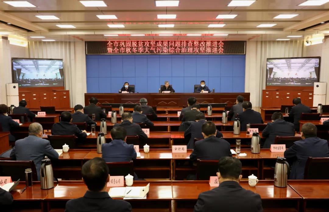 本报讯 (记者任逢春)11月2日,我市召开巩固脱贫攻坚成果问题排查整改暨秋冬季大气污染综合治理攻坚推进会,贯彻全省相关会议精神,对我市工作进行安排部署。市长朱晓东主持会议并讲话。副市长耿鹏鹏,市政府秘书长张艮生出席。会议以视频形式召开,各县(市、区)设分会场,市直相关部门主要负责人在市主会场参加。